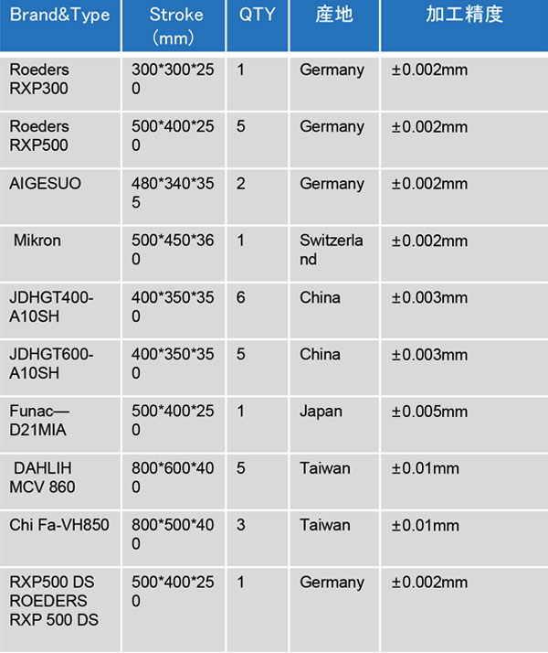 为了保证加工精度,我司不断投入大量资金购置得都是世界顶级品牌设备,如德国的罗德斯,瑞士的米克朗。且于2019年购置顶配的北京精雕8台。 目前共有31台CNC机,最高精度能打到0.002㎜. 罗德斯转度为42000rpm,表面粗糙度可以达Ra0.005、Ry-um0.5(VDI 0)